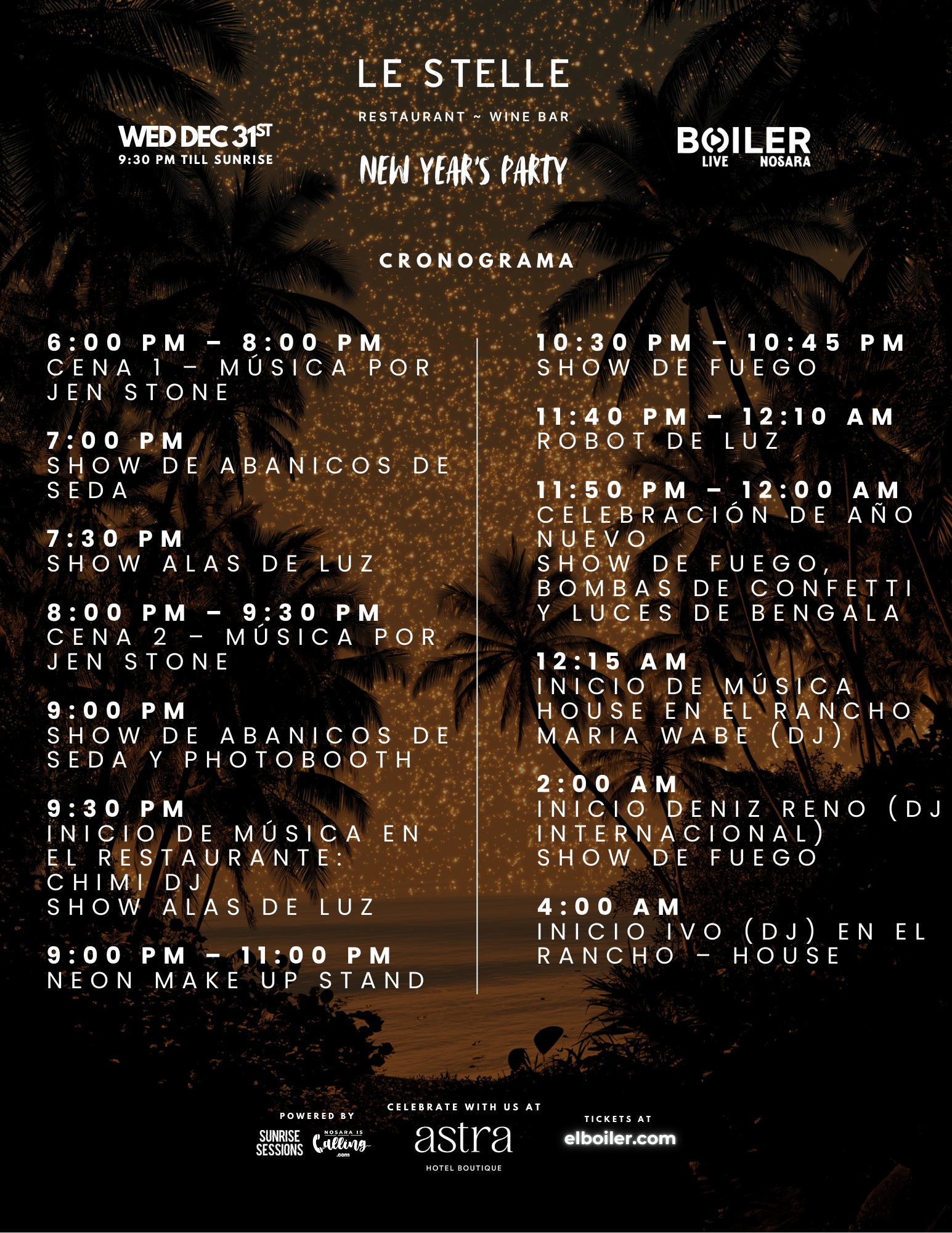 Le Stelle Restaurant & Wine Bar presenta BOILER Live – Fiesta de Año Nuevo, una noche mágica de música, energía y celebración bajo las estrellas.