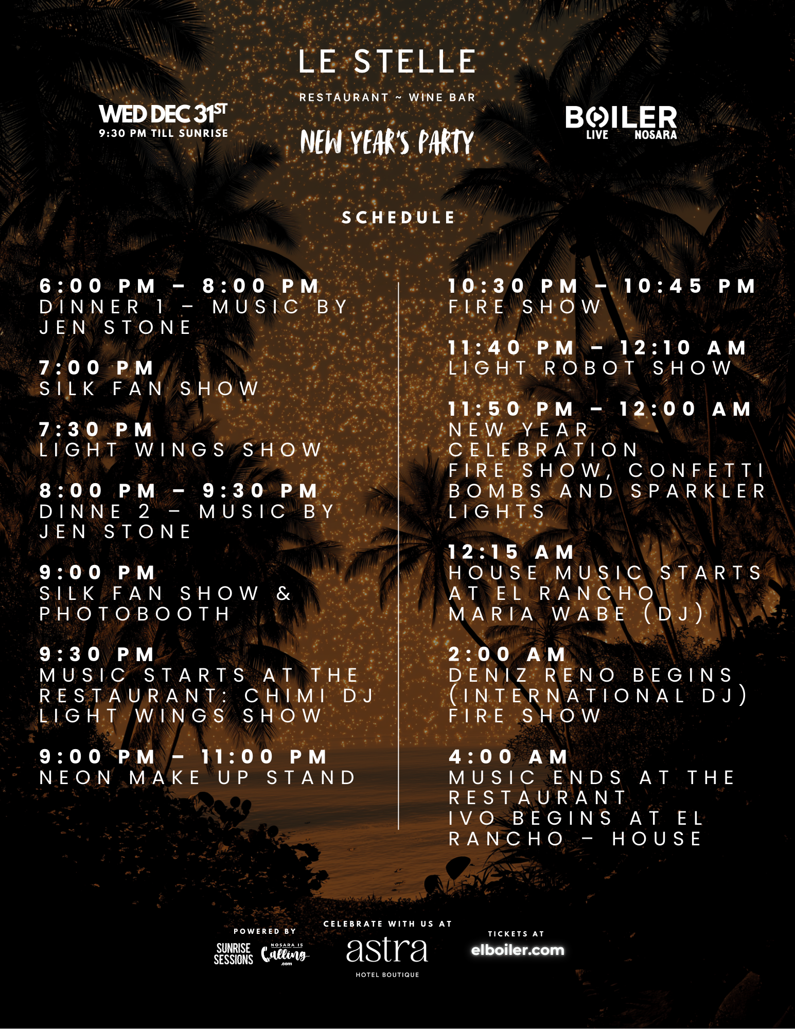 Le Stelle Restaurant & Wine Bar presents BOILER Live – New Year’s Party, a magical night of music, energy, and celebration under the stars.