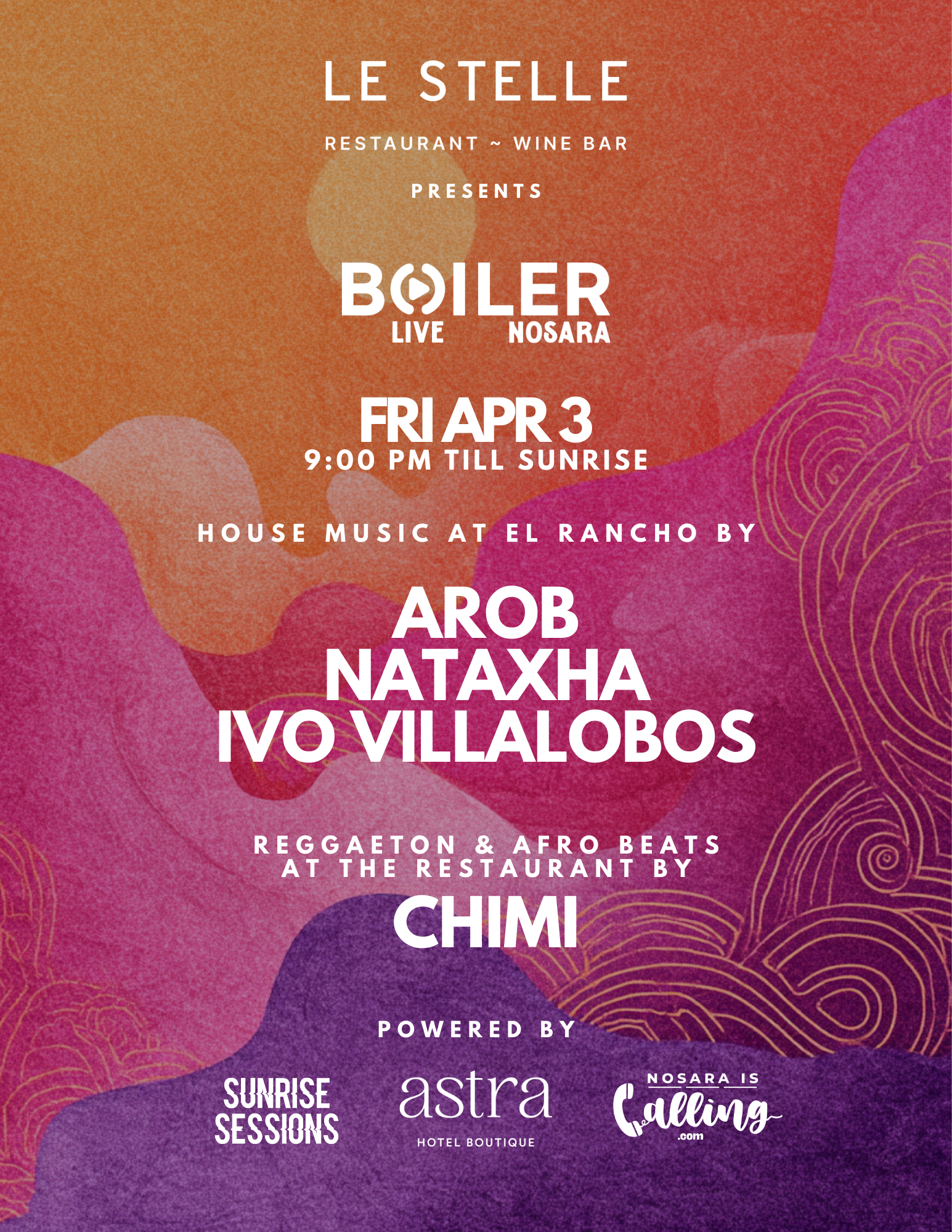 Vive la celebración definitiva de Semana Santa mientras El Boiler toma el control de El Rancho en Nosara. Desde la medianoche hasta el amanecer, sumérgete en la magia de la música house con un line-up cuidadosamente seleccionado de talento regional e internacional.