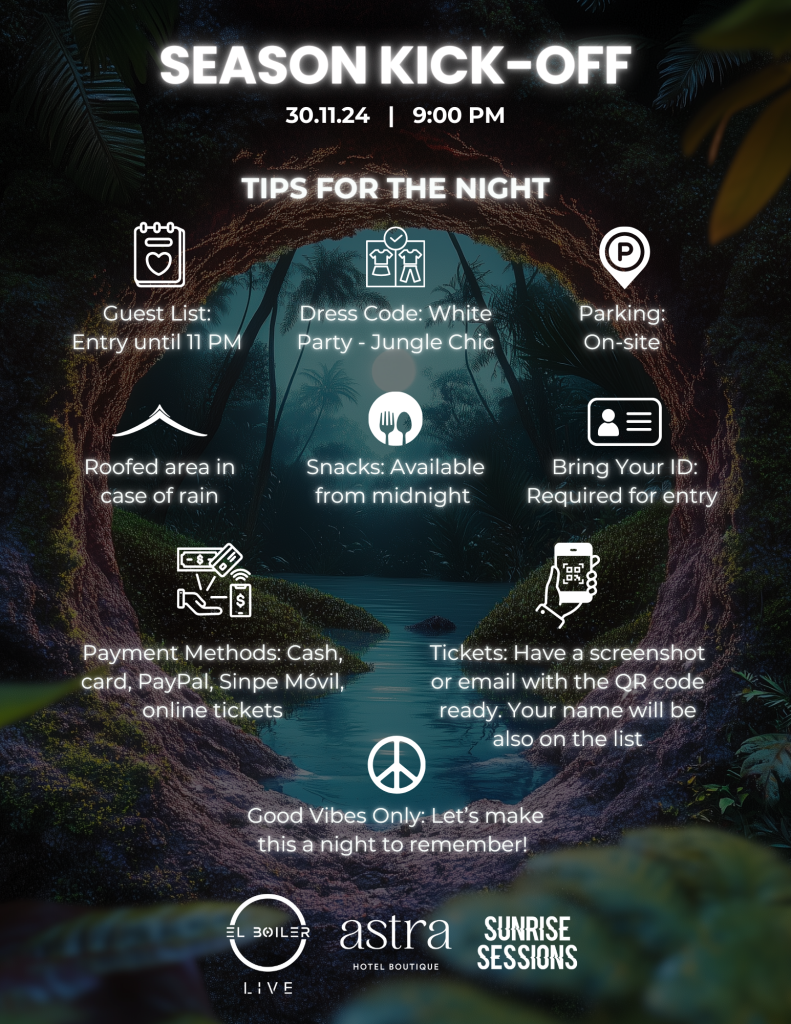 Thanks for your Purchase! Your name will be ON THE LIST See you to dance House Music All Night Long atASTRA HOTEL BOUTIQUE The epicenter of House Music in Costa Rica FOLLOW US Instagram Tiktok-round Social-facebook-circle Powered by: Journey Marketing & Events